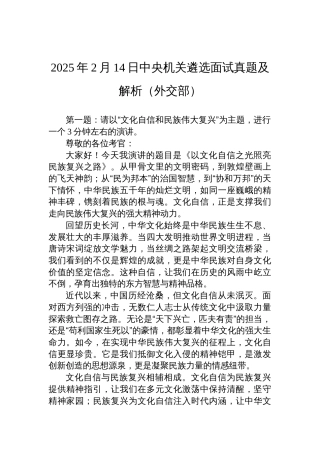 2025年2月14日中央机关遴选面试真题及解析(外交部)