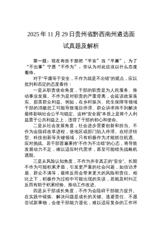 2025年11月29日贵州省黔西南州遴选面试真题及解析