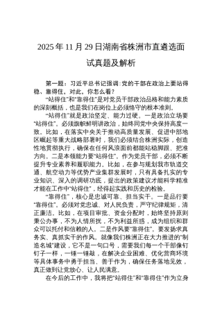 2025年11月29日湖南省株洲市直遴选面试真题及解析