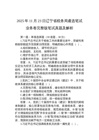 2025年11月23日辽宁省税务局遴选笔试业务卷完整版笔试真题及解析