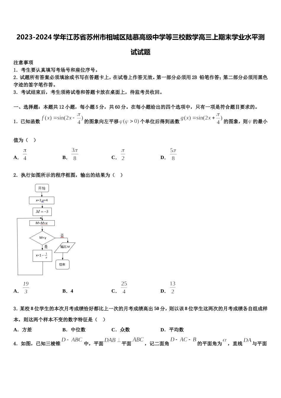 2023-2024学年江苏省苏州市相城区陆慕高级中学等三校数学高三上期末学业水平测试试题含解析_第1页