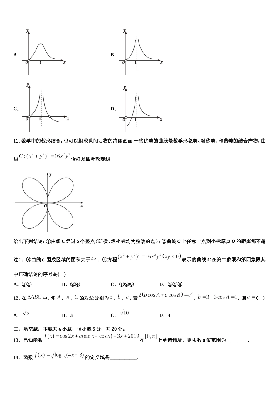 2024年陕西省四校高三上数学期末联考模拟试题含解析_第3页