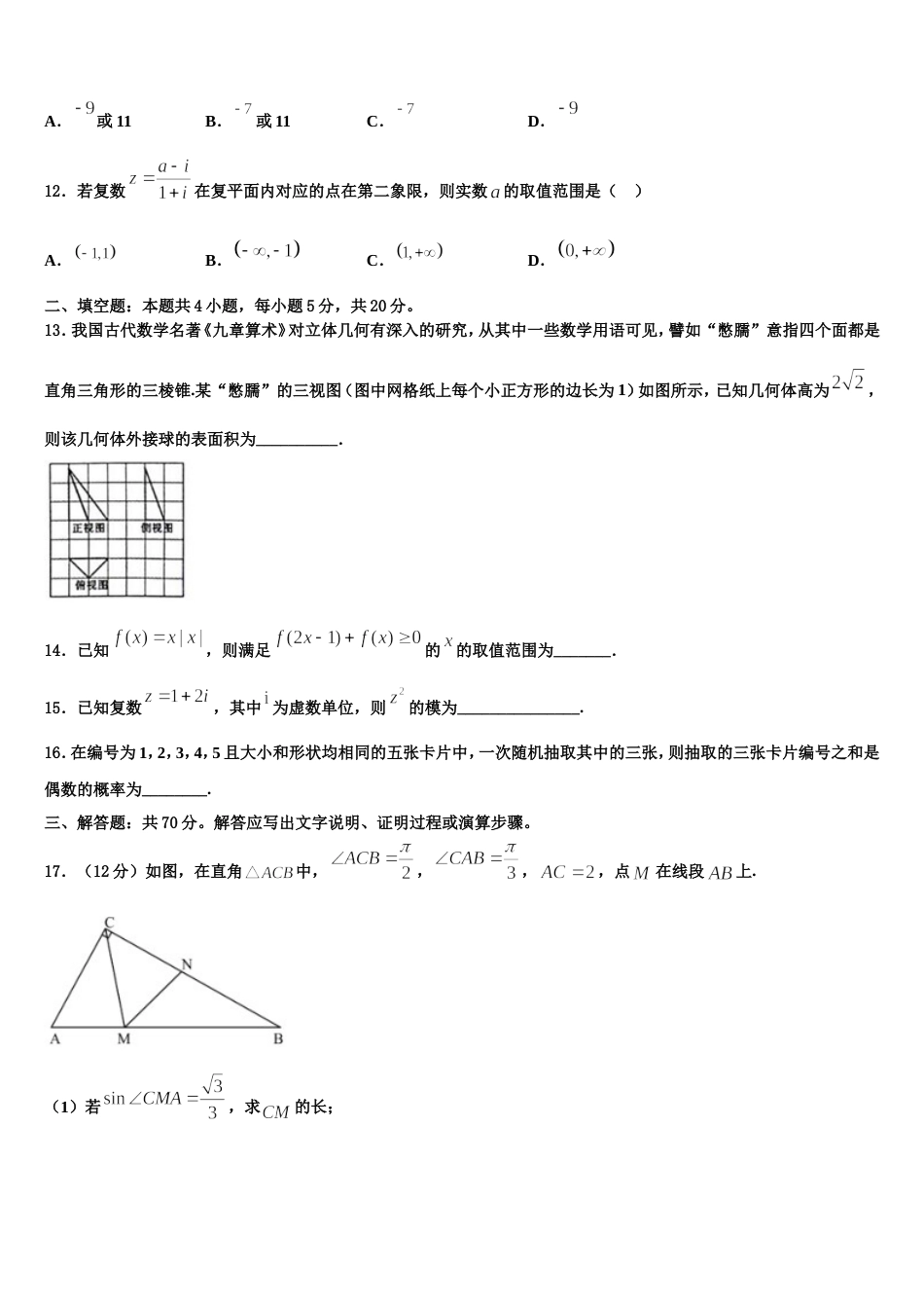 云南省会泽县第一中学2024届高三数学第一学期期末检测模拟试题含解析_第2页