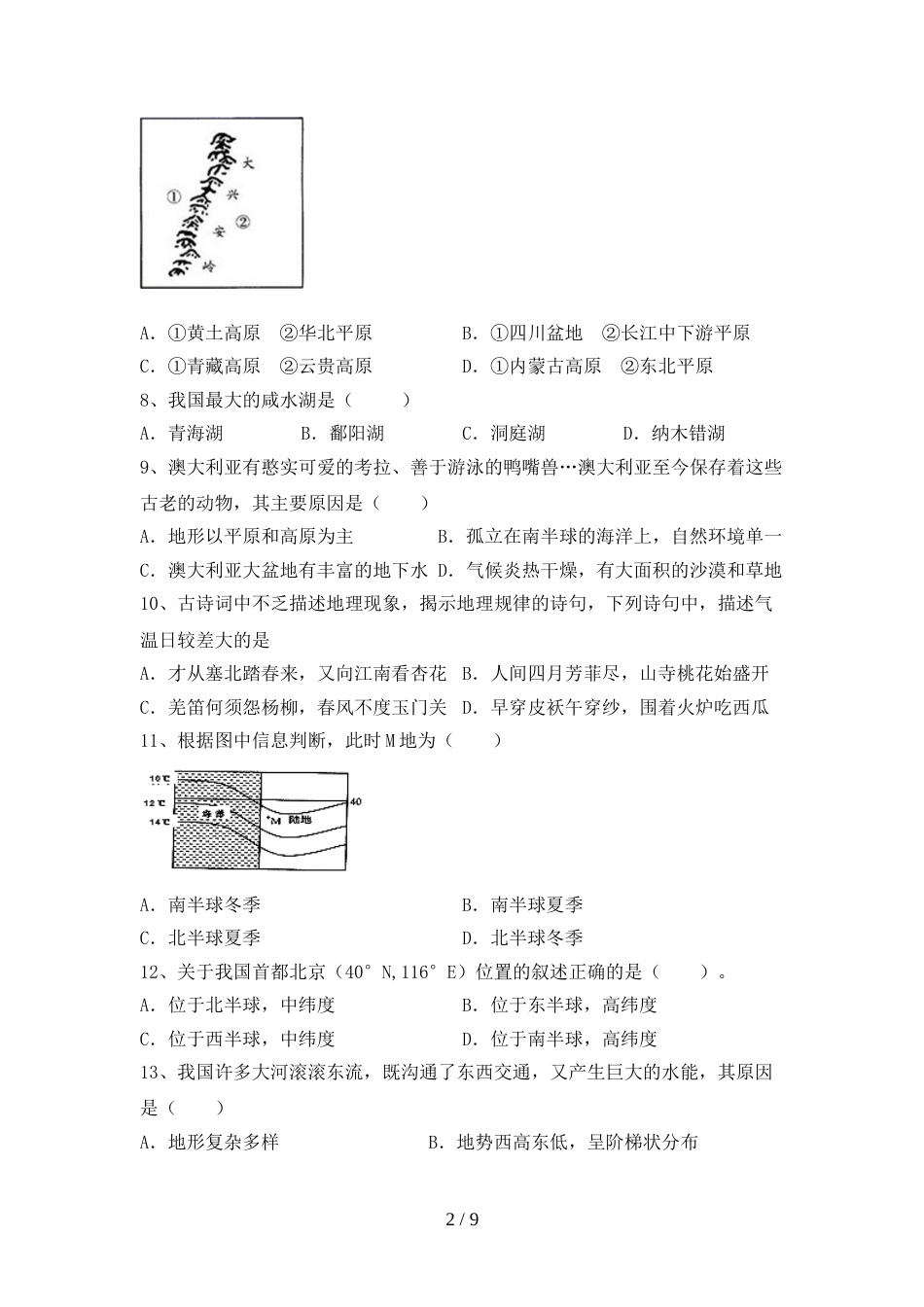 2023年人教版地理八年级上册期末考试卷(最新)_第2页