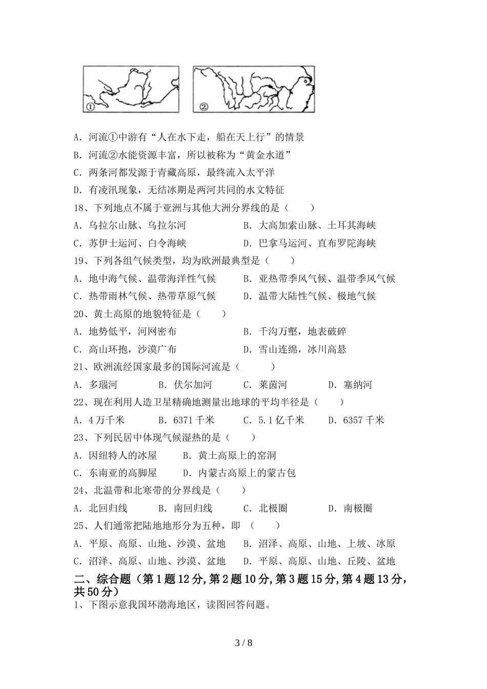 最新人教版九年级地理上册期末测试卷及答案下载_第3页