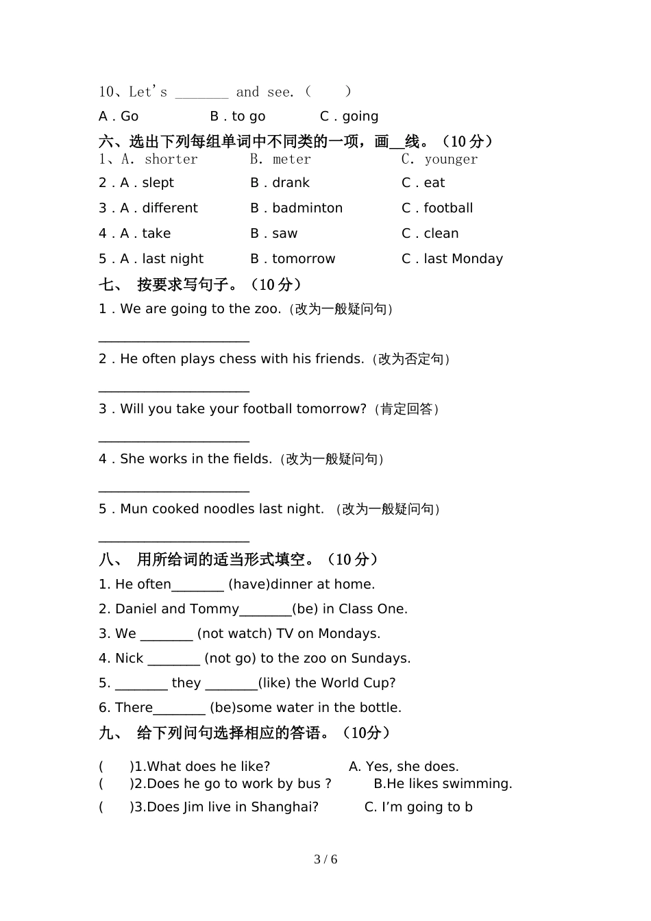 最新PEP六年级英语上册期中考试及答案【A4打印版】_第3页