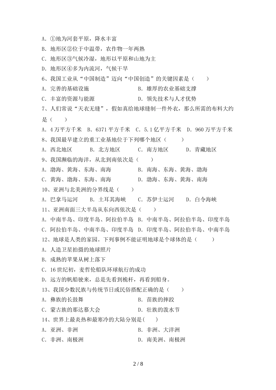 2023年部编版八年级地理上册期末复习考试(时间:60分钟分数:100分)班级:姓名:分数:一、选择题(共25个小题,每题2分,共50分)1、有一...