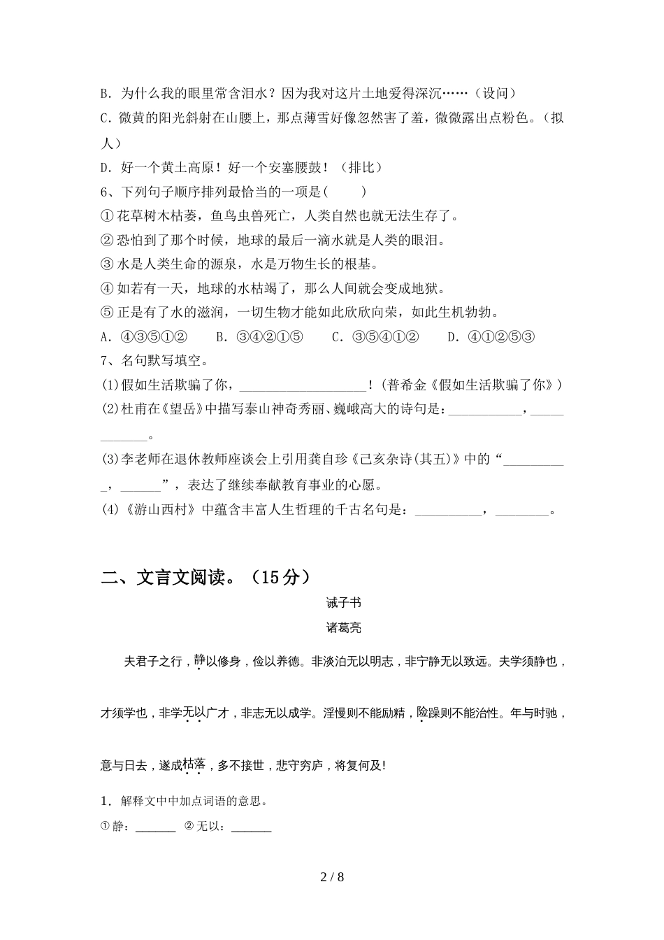 部编版七年级语文(上册期中)试卷及答案(全面)_第2页