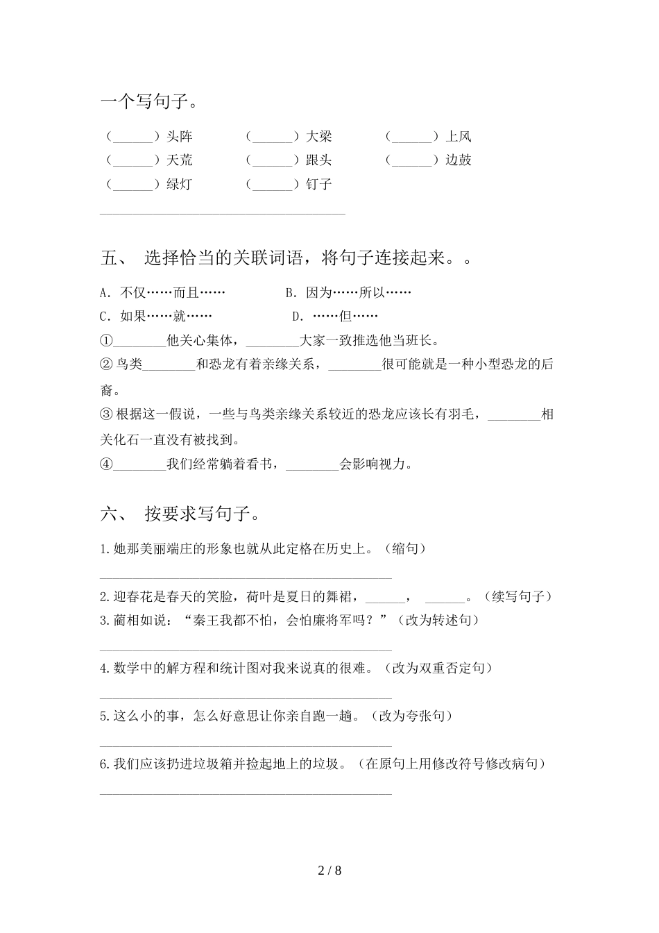 最新人教版四年级语文上册期中测试卷【含答案】_第2页