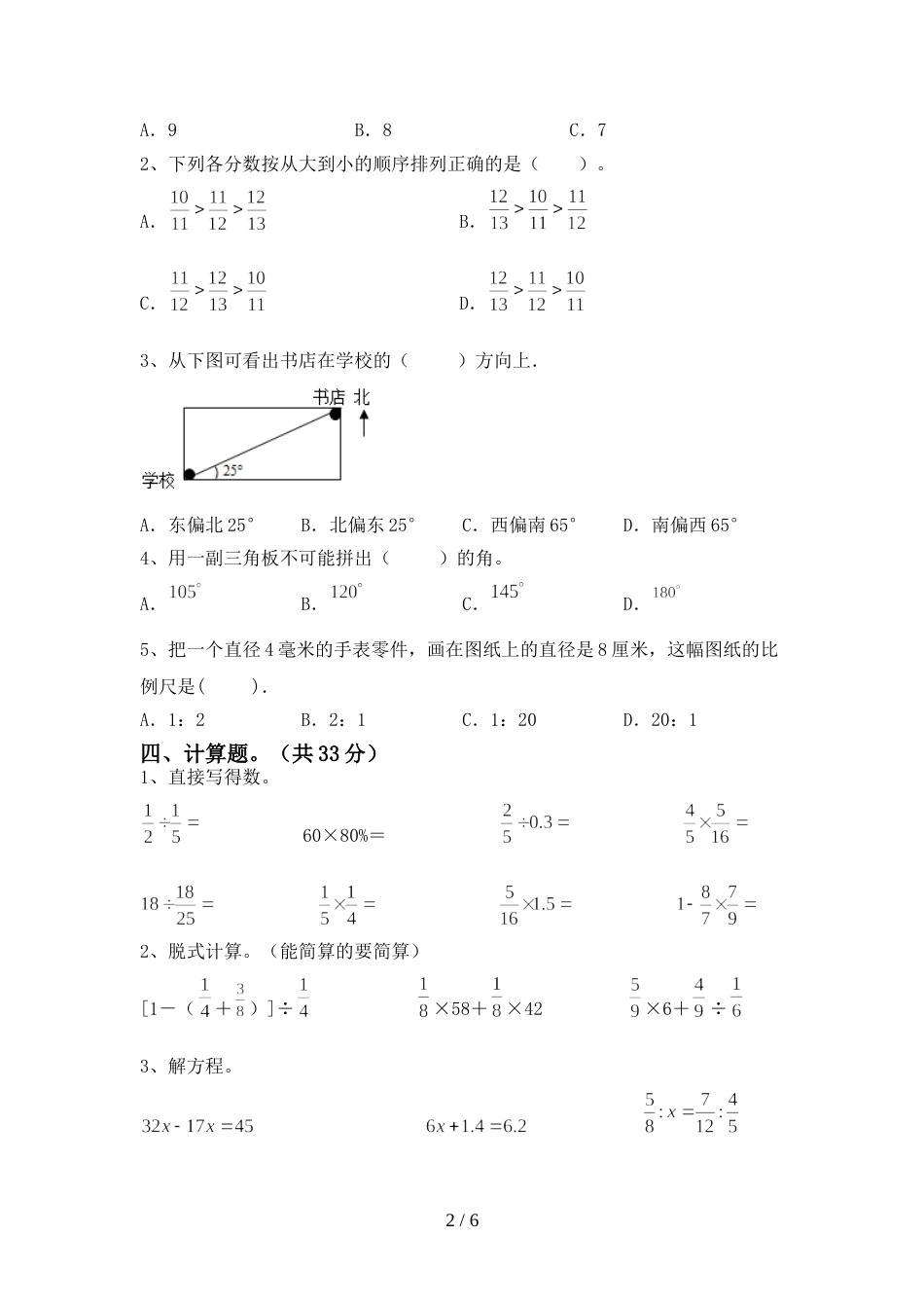 最新人教版六年级数学上册期末模拟考试(及答案)_第2页