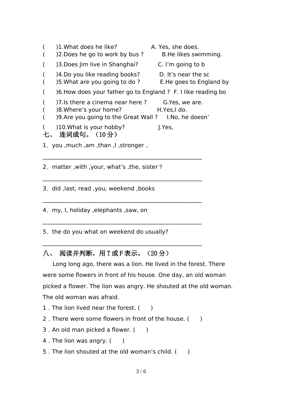 2021—2022年人教版六年级英语上册期中模拟考试及参考答案_第3页