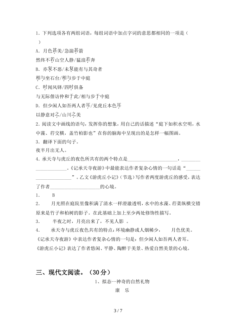 初中八年级语文上册期中试卷(必考题)满分:120分考试时间:120分钟一、语言的积累与运用。(35分)1、下列加点字注音或书写完全正确的一...