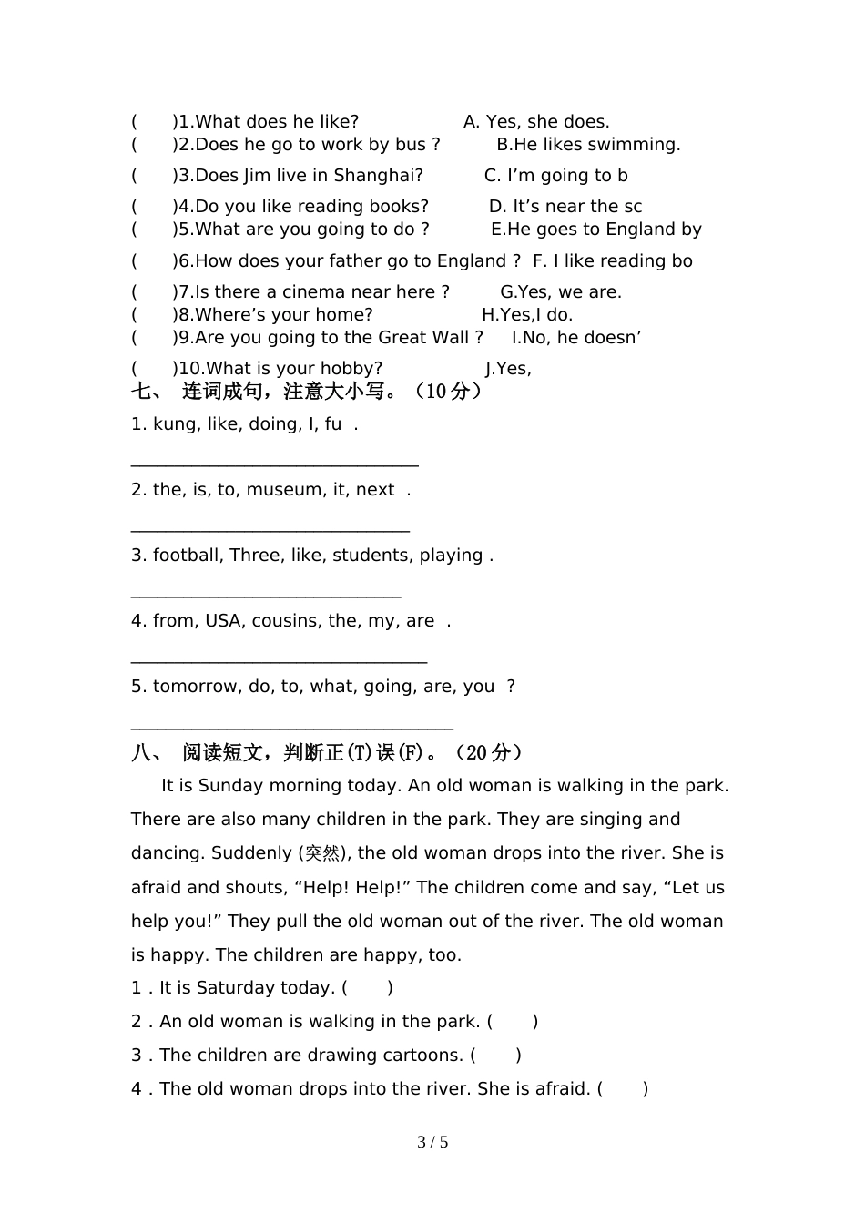 2022年PEP六年级英语上册期中测试卷及答案【A4打印版】_第3页
