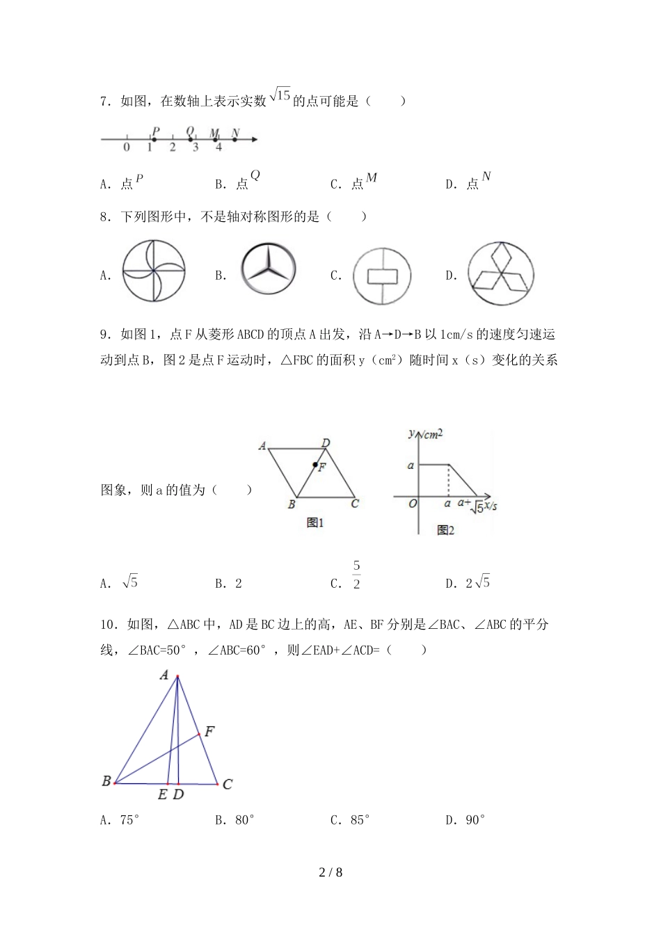 八年级数学上册期末考试题及答案(1)班级:姓名:一、选择题(本大题共10小题,每题3分,共30分)1.下列说法中正确的是()A.若,则B....