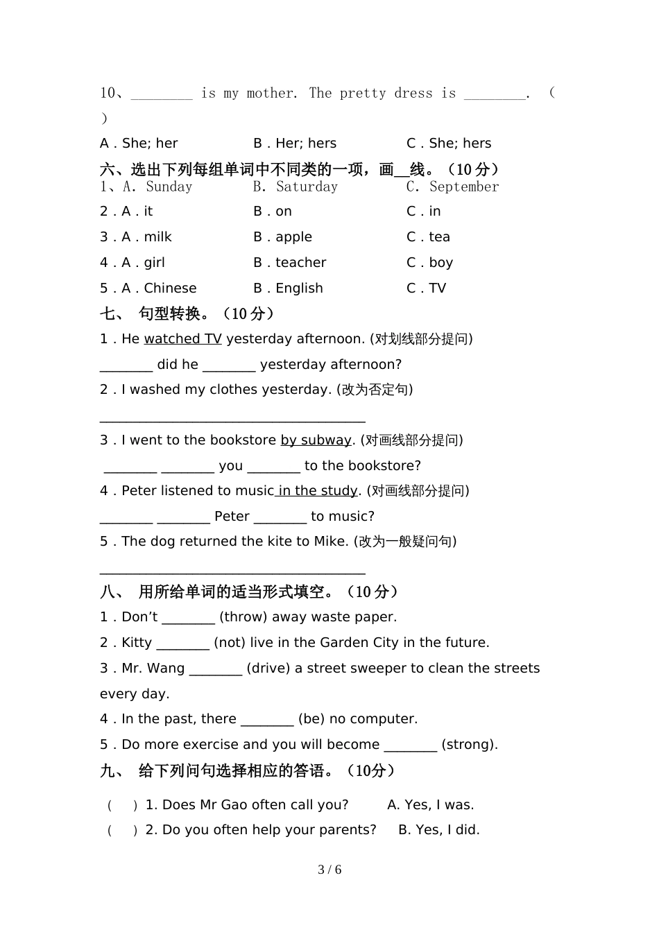 2022年北京版六年级英语上册期中考试(完美版)_第3页