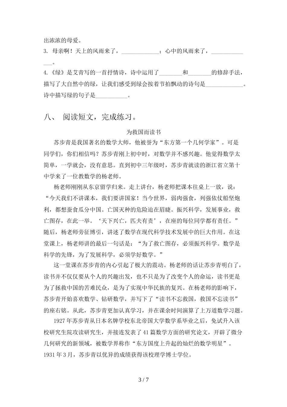 小学四年级语文上册期中试卷及答案【2022年】_第3页