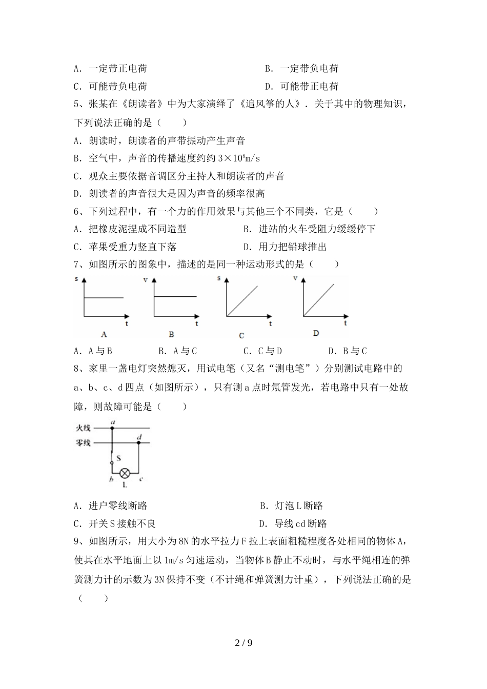 人教版九年级物理上册期末试卷及答案(1)_第2页