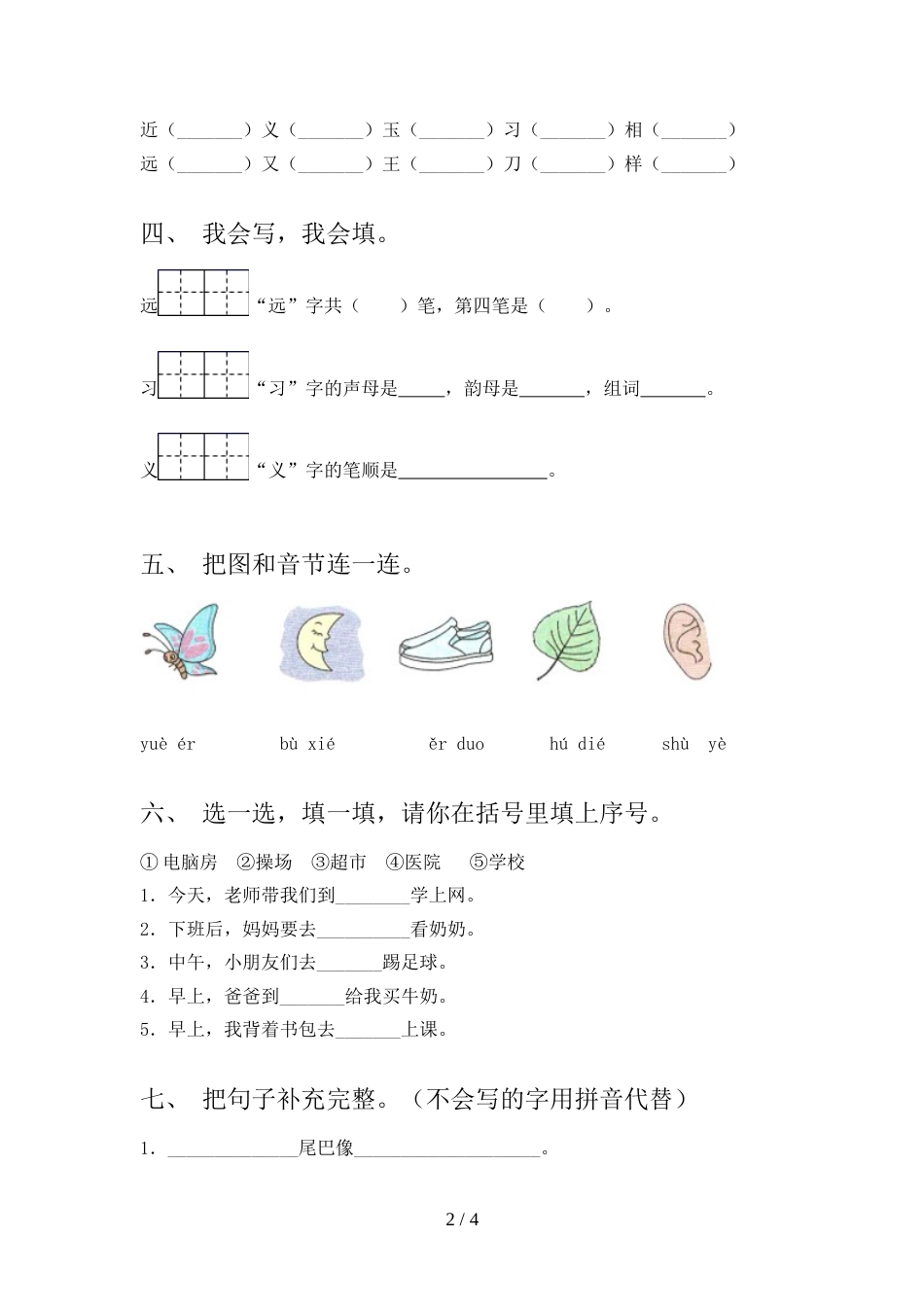 2022年一年级语文上册期中考试题【及答案】_第2页