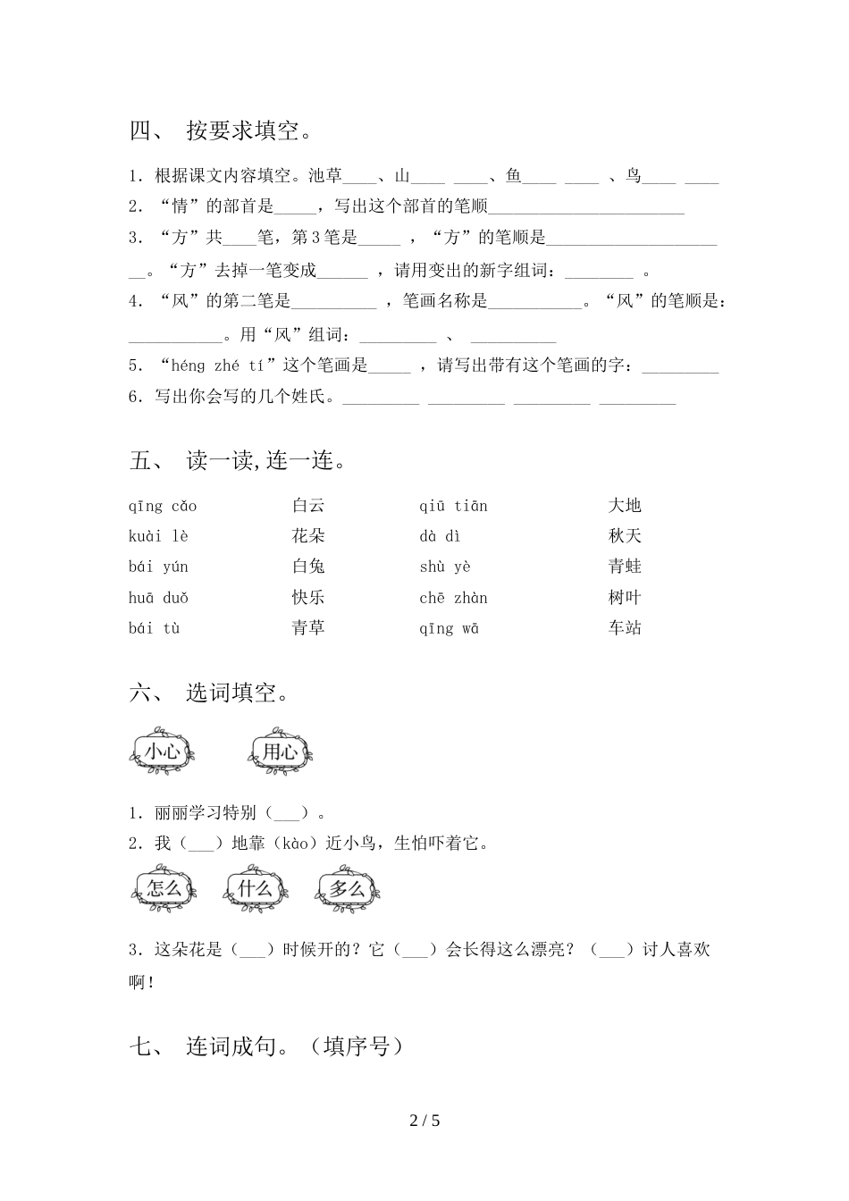 人教版一年级上册语文《期末》考试【加答案】_第2页