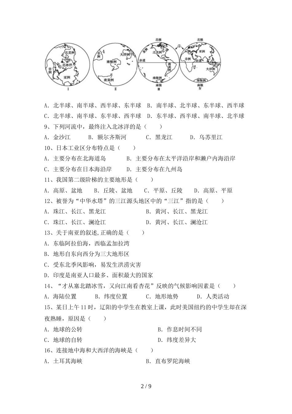 2023年九年级地理(上册)期末试题(附参考答案)_第2页