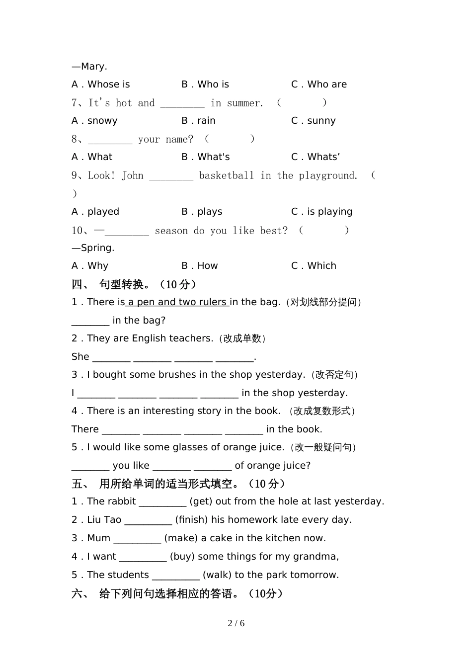 2022年北京版六年级英语上册期中考试【附答案】_第2页