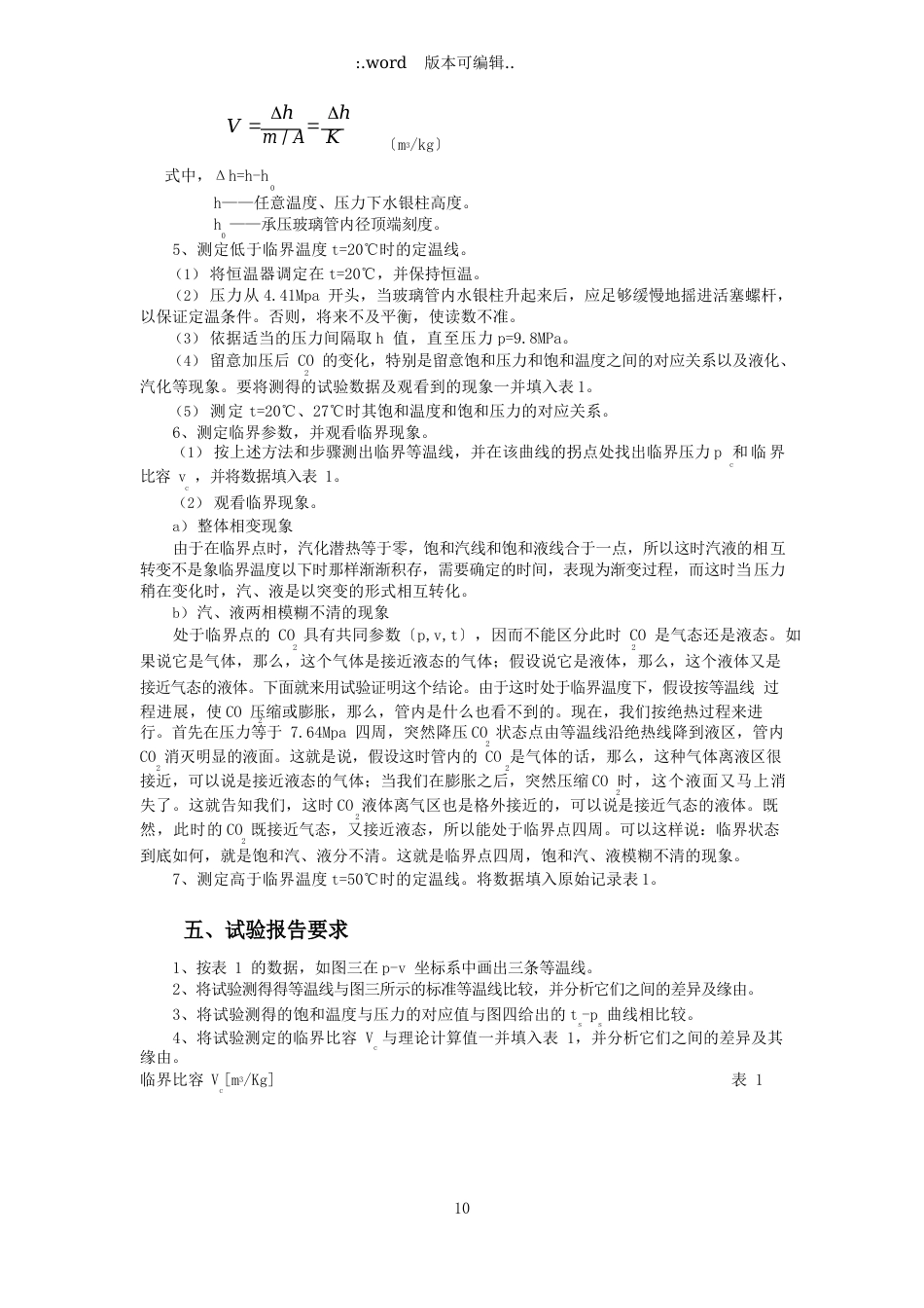:.word版本可编辑..10【关键字】试验工程热力学二氧化碳临界状态观测及P-V-T关系一、试验目的1、了解CO2临界状态的观测方法,增加对临界状...