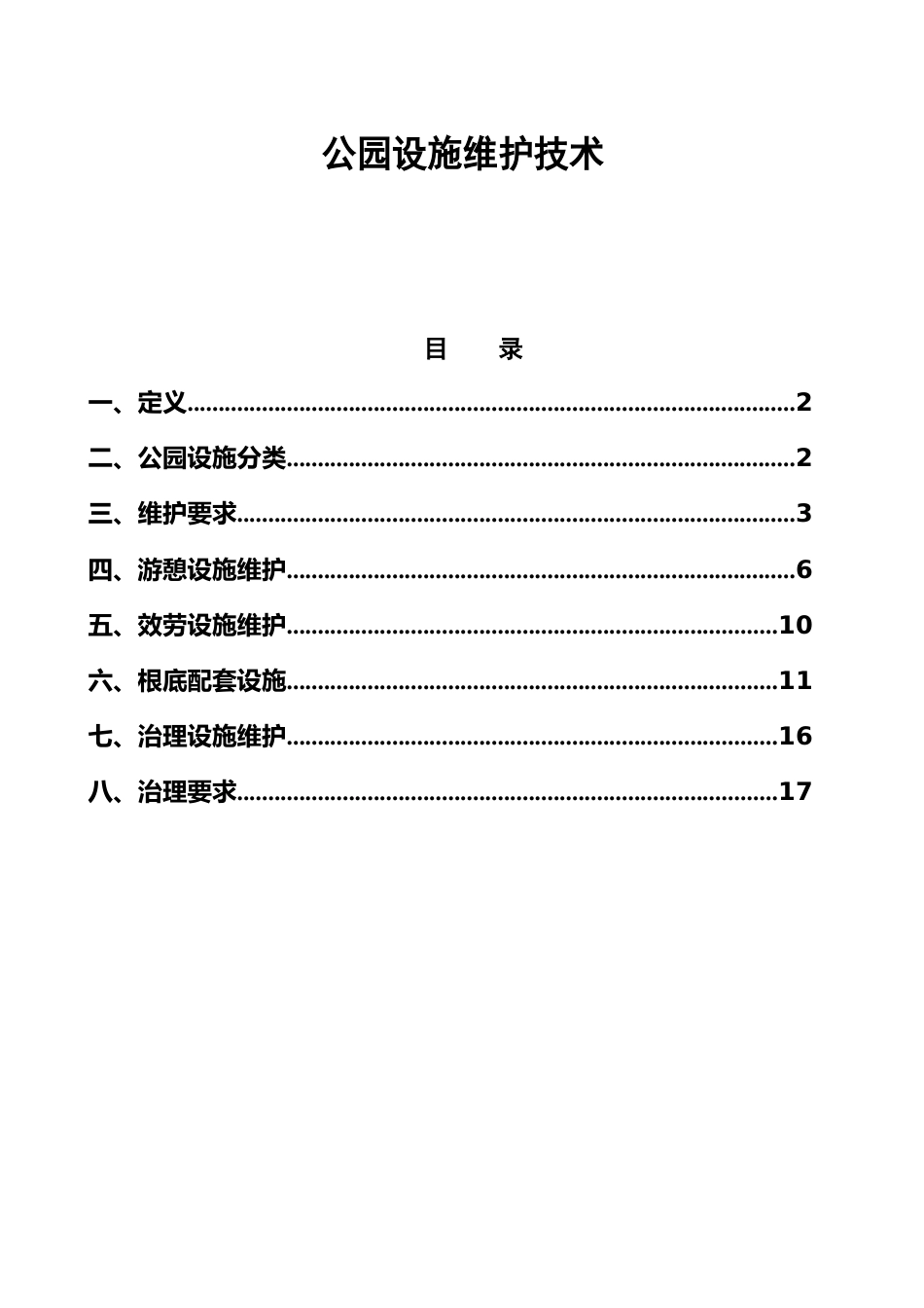 公园设施维护技术目录一、定义..................................................................................................2二...