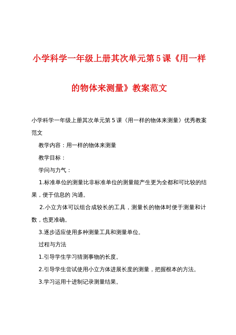 小学科学一年级上册第二单元第5课《用相同的物体来测量》教案范文_第1页