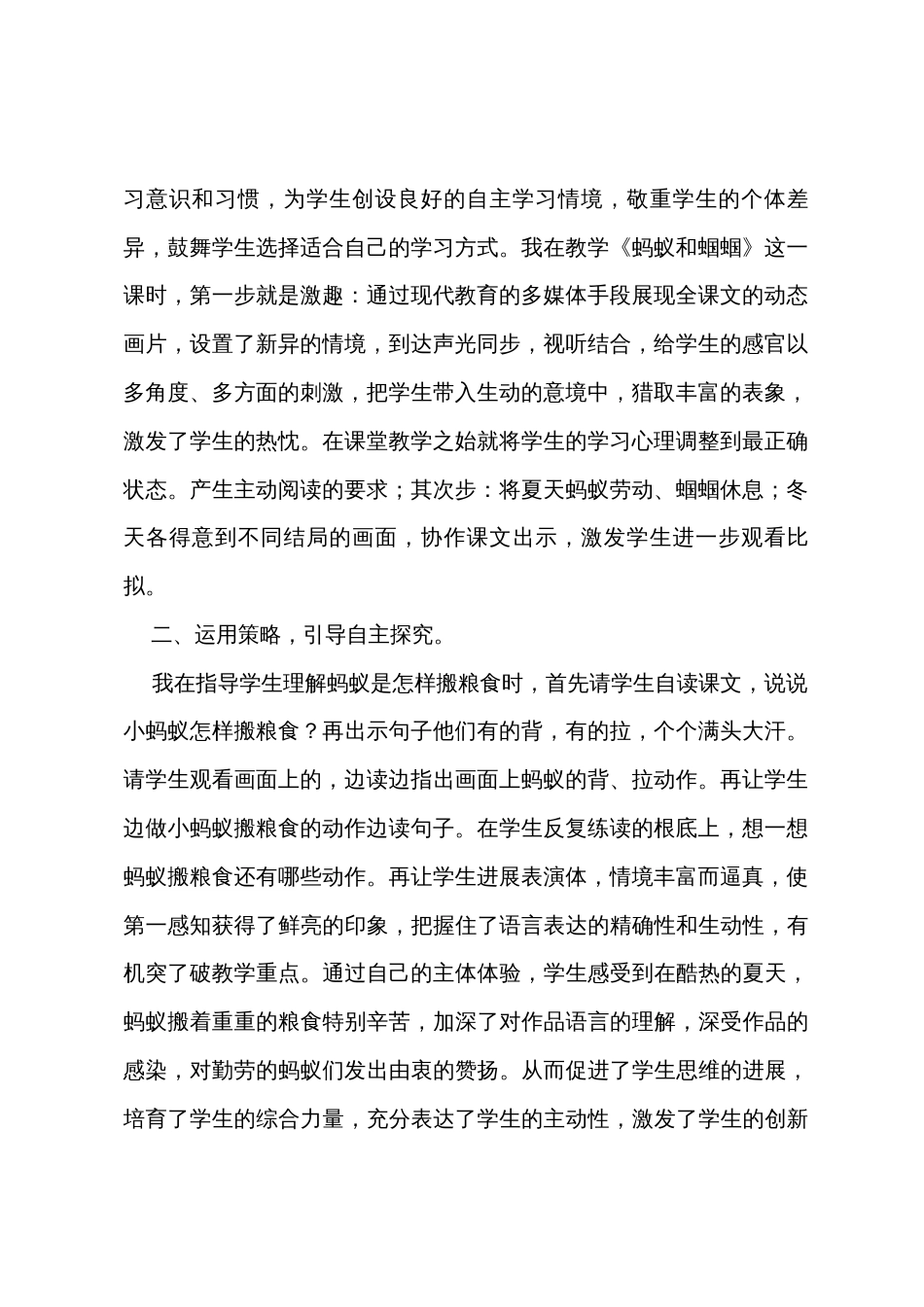 《蚂蚁和蝈蝈》教学反思范文_第2页