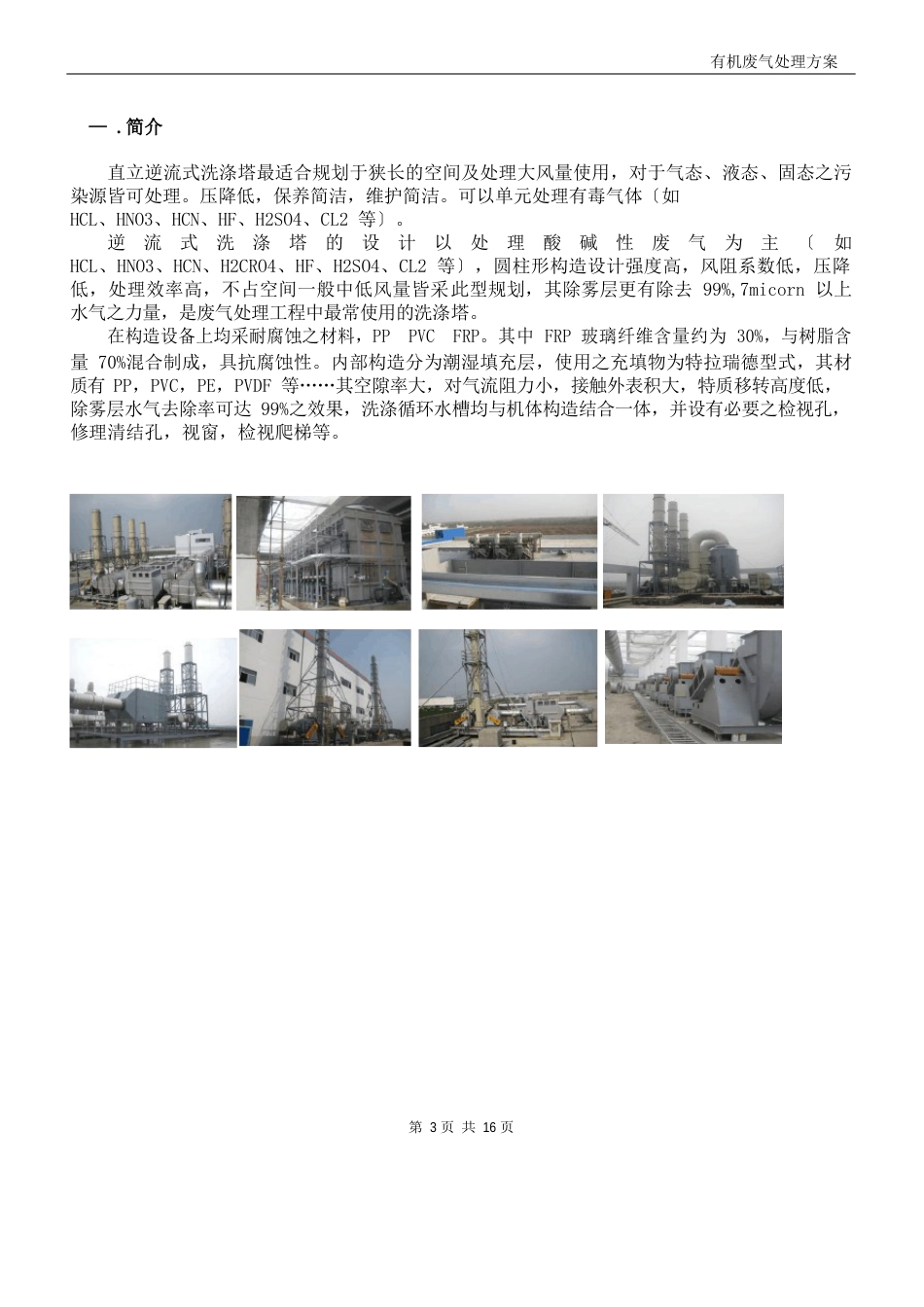 有机废气处理方案编号:废气处理工程设计方案二零二贰年七月有机废气处理方案目录一、简介二、概述三、设计依据四、设计原则五、设计范围与...