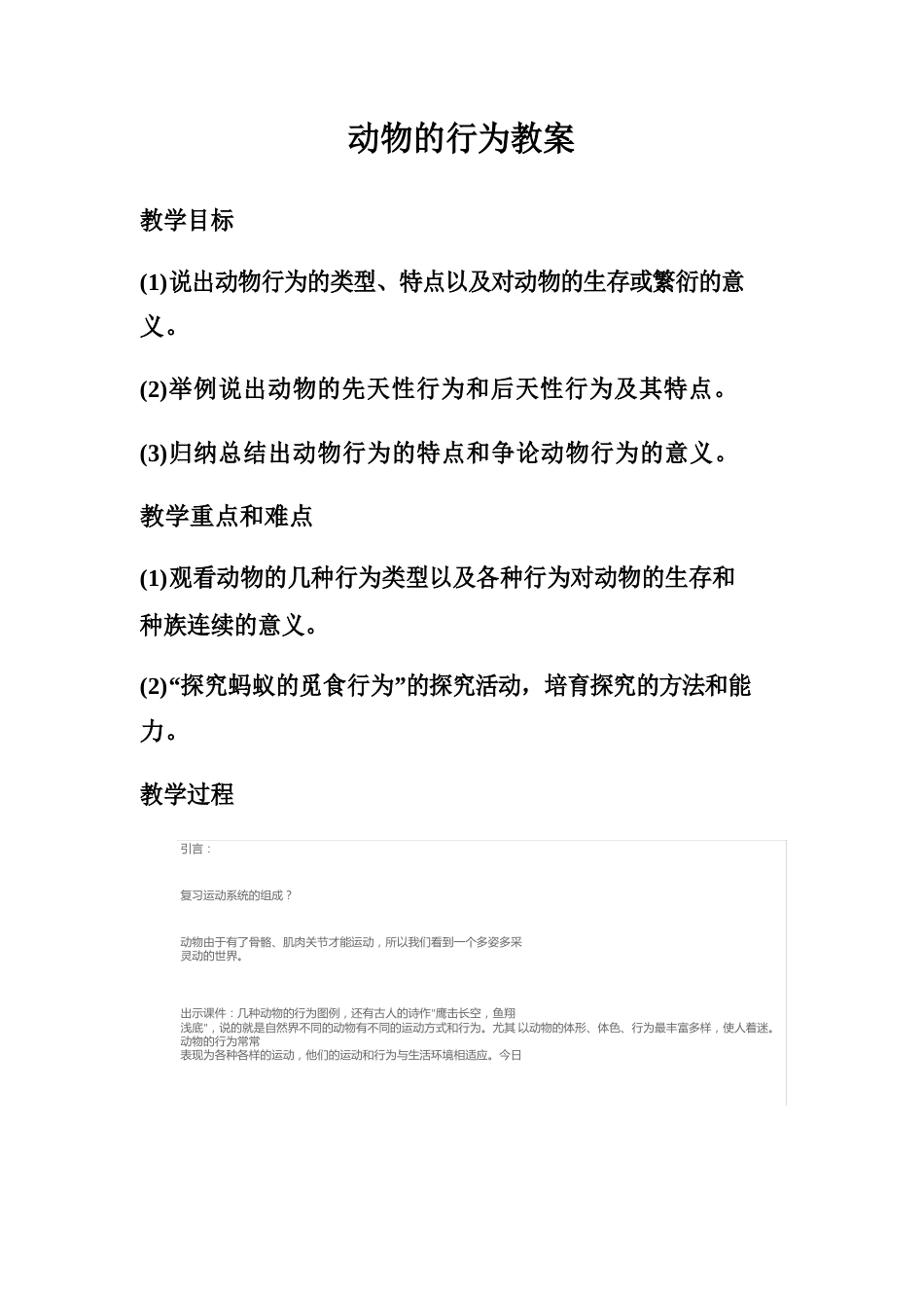 引言:复习运动系统的组成?动物由于有了骨骼、肌肉关节才能运动,所以我们看到一个多姿多采灵动的世界。“出示课件:几种动物的行为图例,...