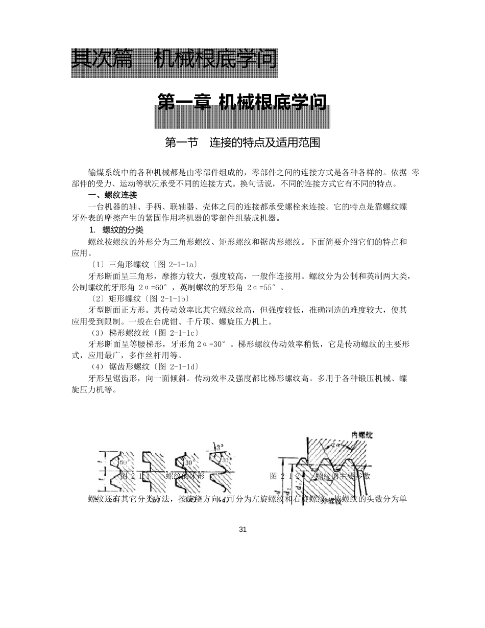 其次篇机械根底学问第一章机械根底学问第一节连接的特点及适用范围输煤系统中的各种机械都是由零部件组成的,零部件之间的连接方式是各种各...