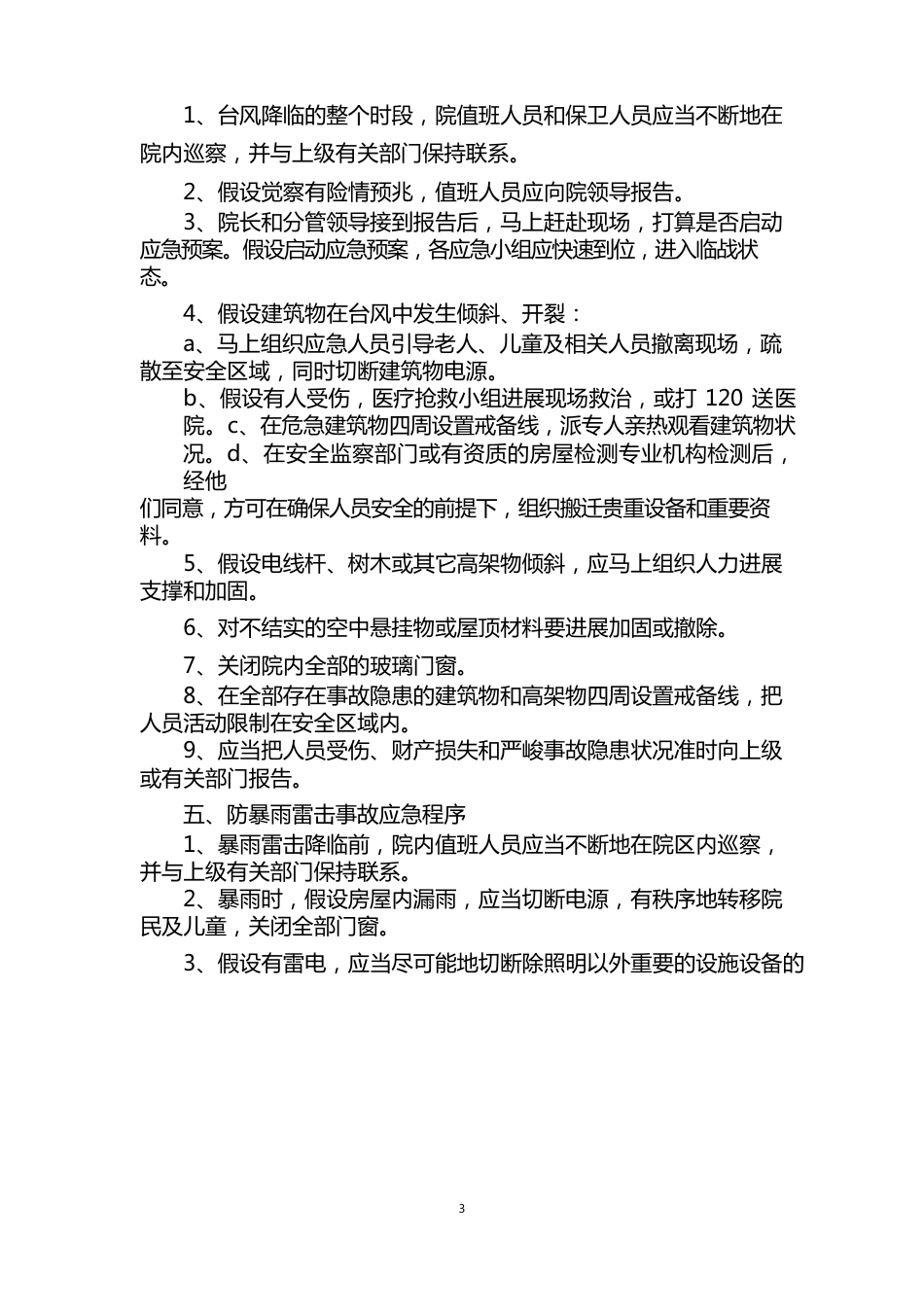 3社会福利院突发大事应急预案一、指导思想:安全工作是院各项工作的重中之重。为全面贯彻党中心关于安全生产的指示精神,我院建立和完善了...