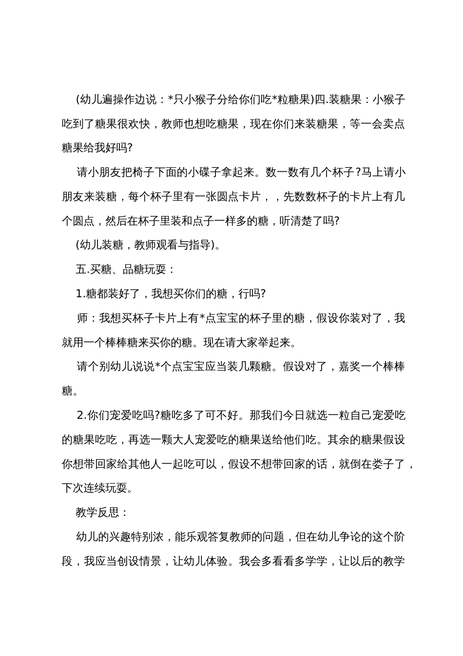 小班数学好玩的糖教案反思1、小班数学好玩的糖教案反思活动目标:1.结合生活阅历,运用各种感官感知5以内的数量,提高幼儿点数、计数、匹配...