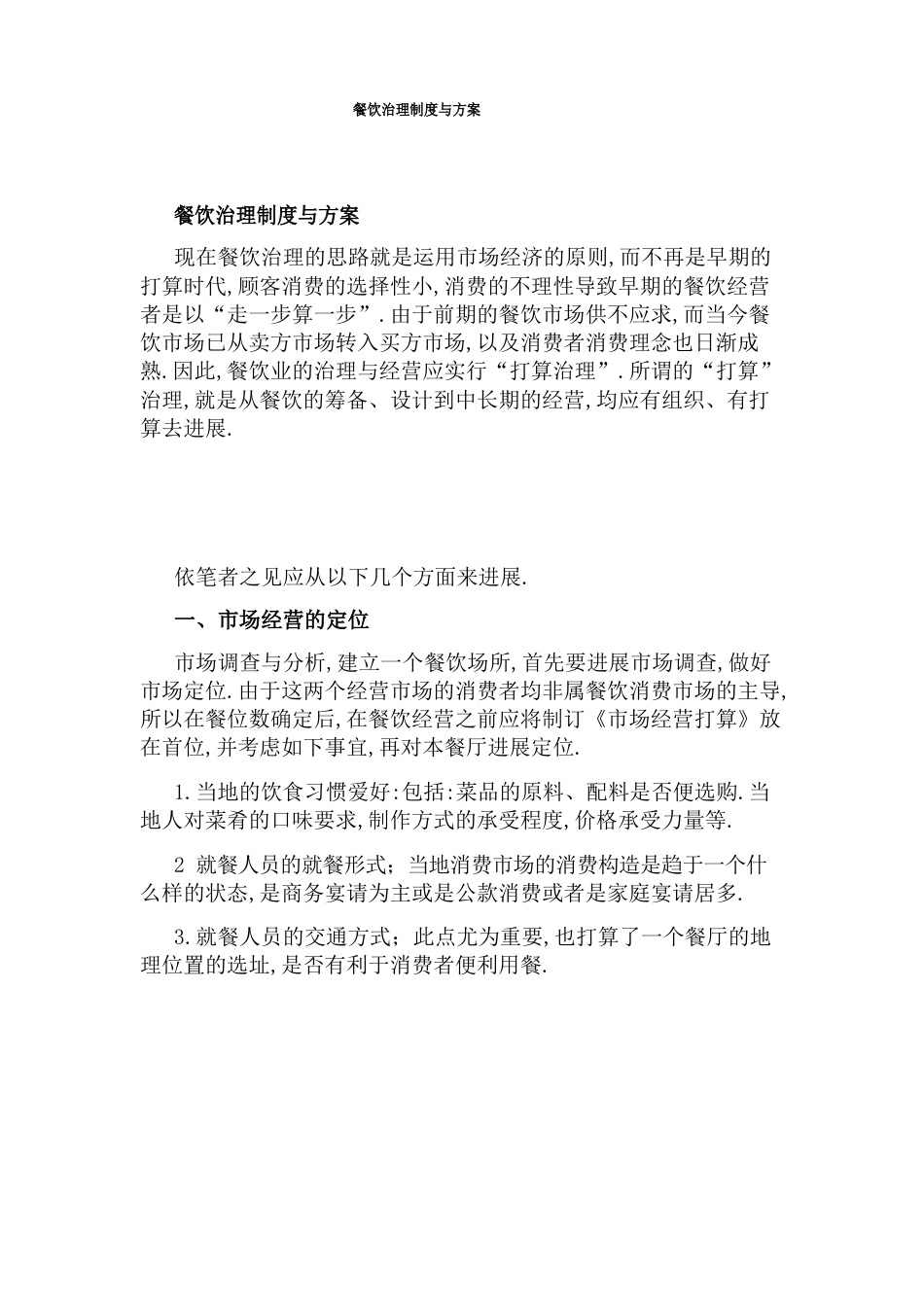 餐饮治理制度与方案餐饮治理制度与方案现在餐饮治理的思路就是运用市场经济的原则,而不再是早期的打算时代,顾客消费的选择性小,消费的不理...
