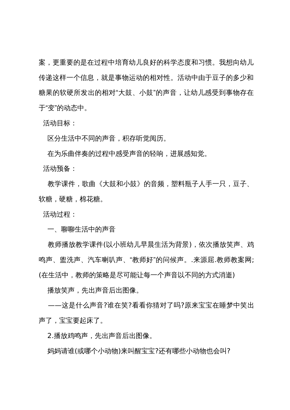 小班语言优秀教案及教学反思《好听的声音》_第3页