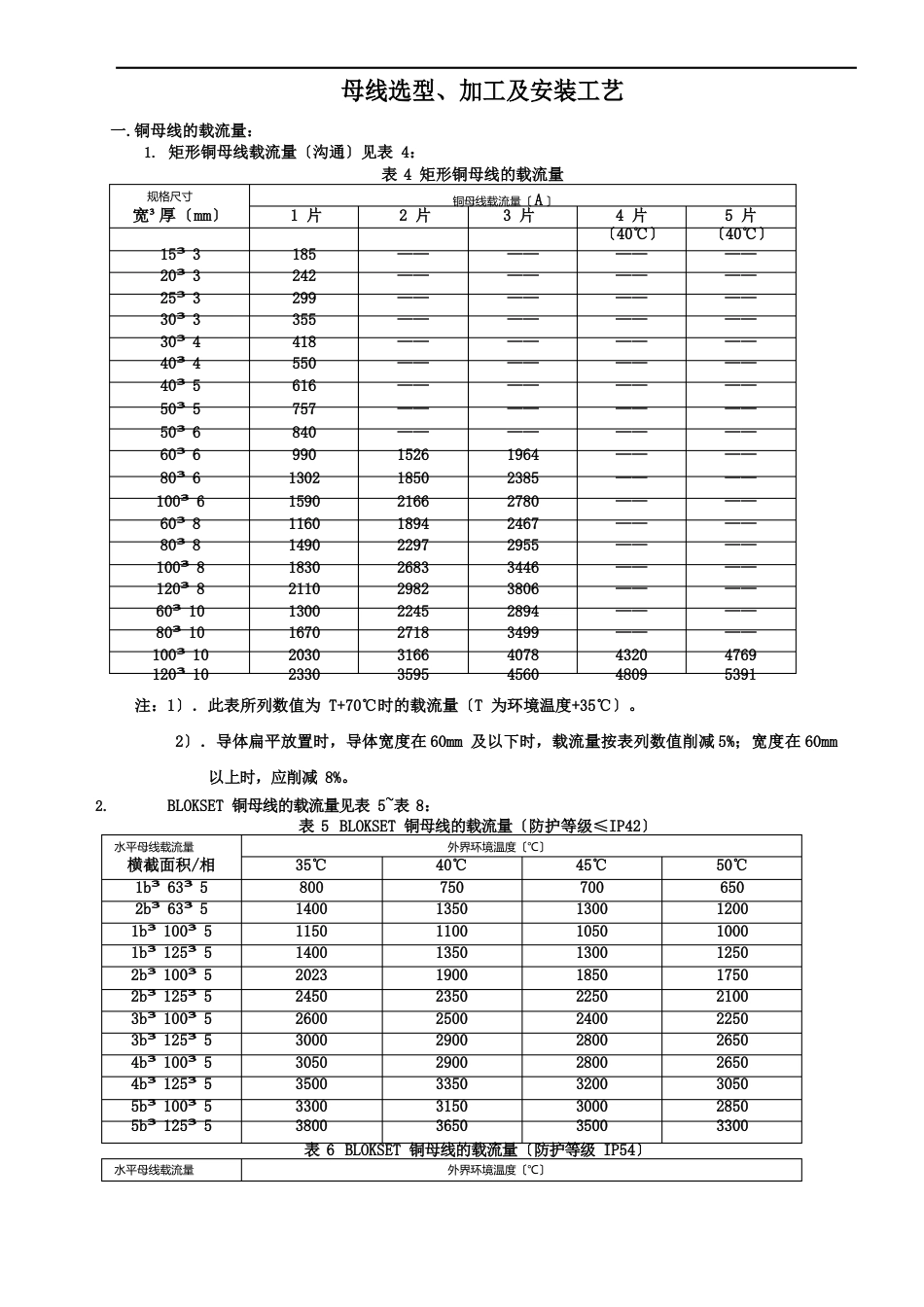 规格尺寸铜母线载流量〔A〕水平母线载流量外界环境温度〔℃〕水平母线载流量外界环境温度〔℃〕母线选型、加工及安装工艺一.铜母线的载流量...