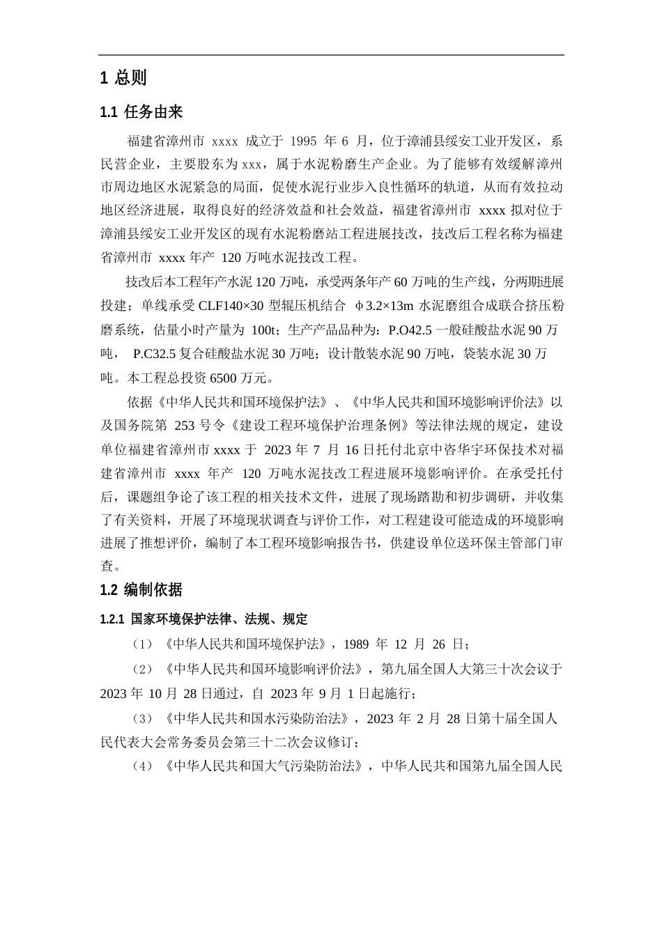 1总则1.1任务由来福建省漳州市xxxx成立于1995年6月,位于漳浦县绥安工业开发区,系民营企业,主要股东为xxx,属于水泥粉磨生产企业。为了能...