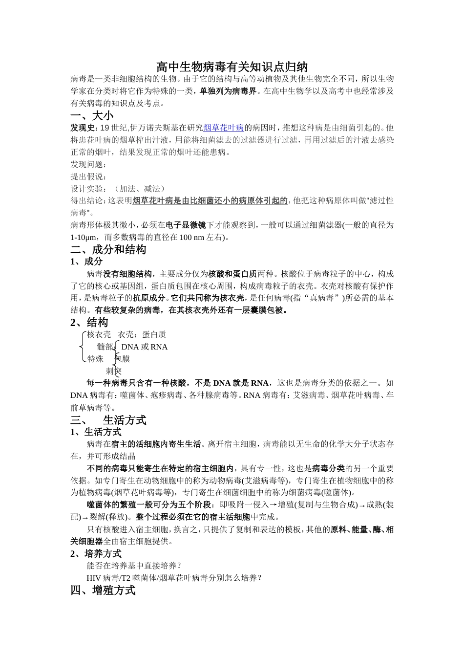 高中生物病毒有关知识点归纳病毒是一类非细胞结构的生物。由于它的结构与高等动植物及其他生物完全不同,所以生物学家在分类时将它作为特殊...