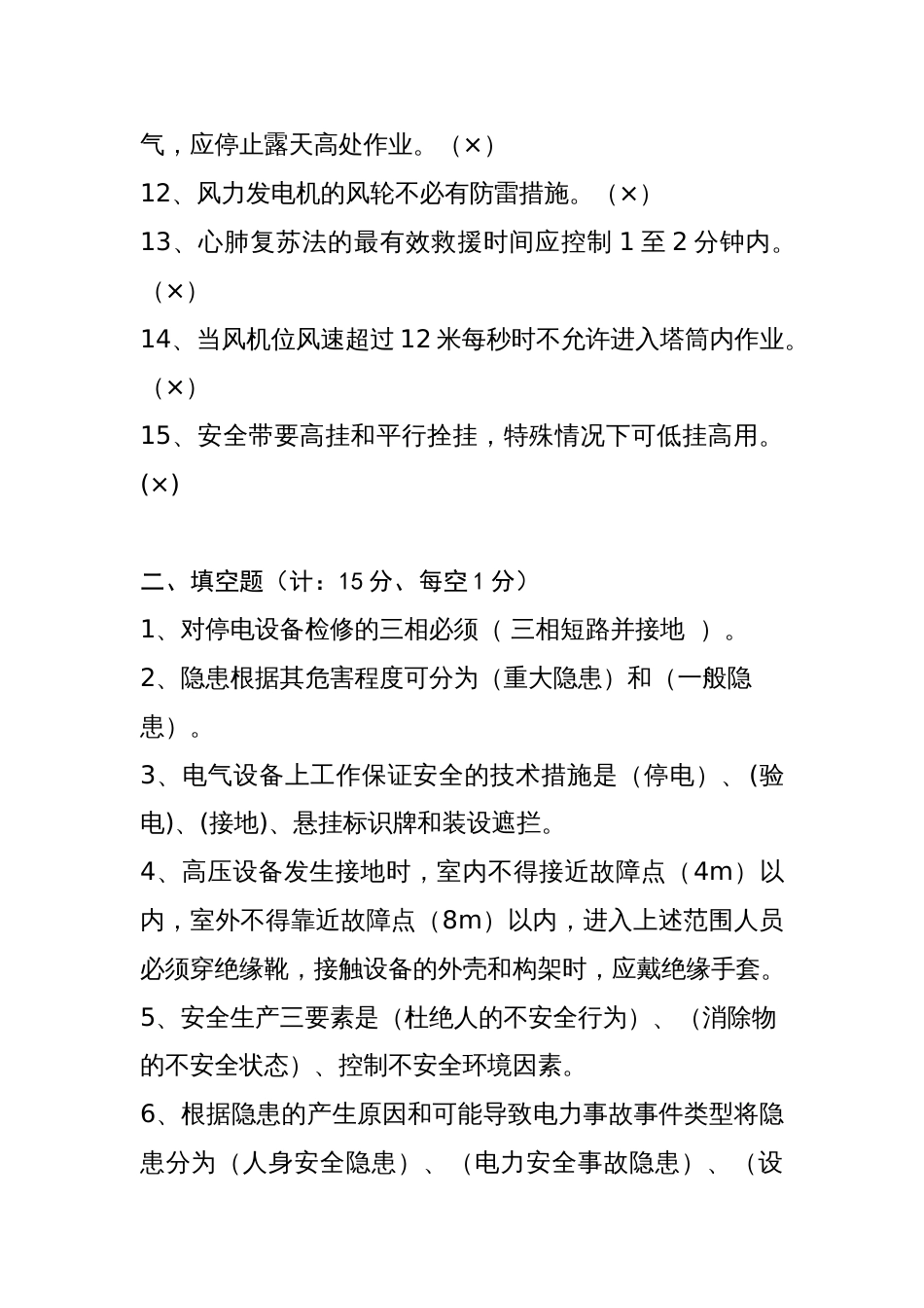 崇义龙归风电厂安全月考试一、判断题(计:15分、每题2分)1、电气设备上工作保证安全的技术措施是停电、验电、接地、悬挂标识牌和装设遮拦...