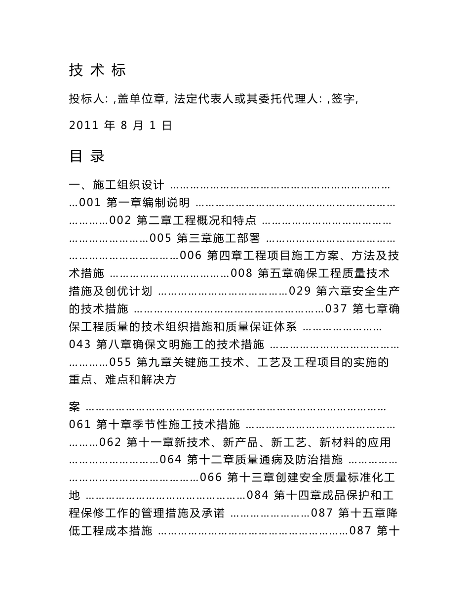 技术标投标人:,盖单位章,法定代表人或其委托代理人:,签字,2011年8月1日目录一、施工组织设计…………………………………………………………...