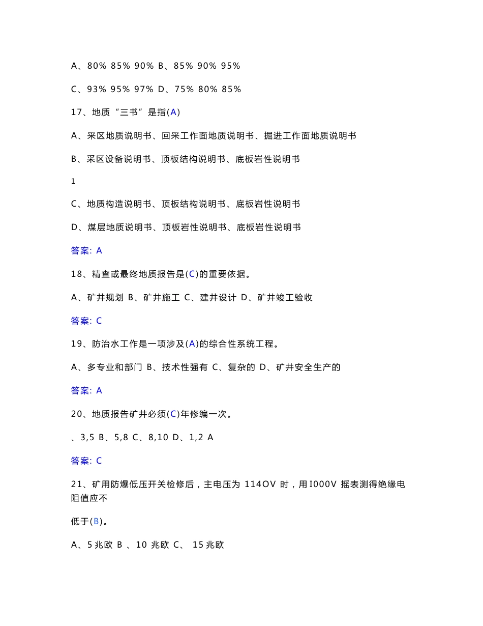 常村矿《总工程师技术手册》考试卷单位:姓名:分数:阅卷人:一、单项选择题:(每题0.5分,共20分)1、采掘队组在更换风筒时,必须安排在。(B)A:...