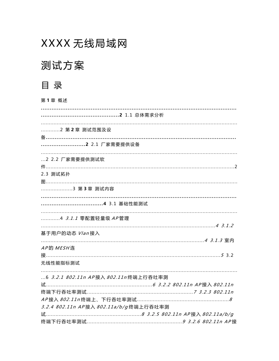 XXXX无线局域网测试方案目录第1章概述..................................................................................................