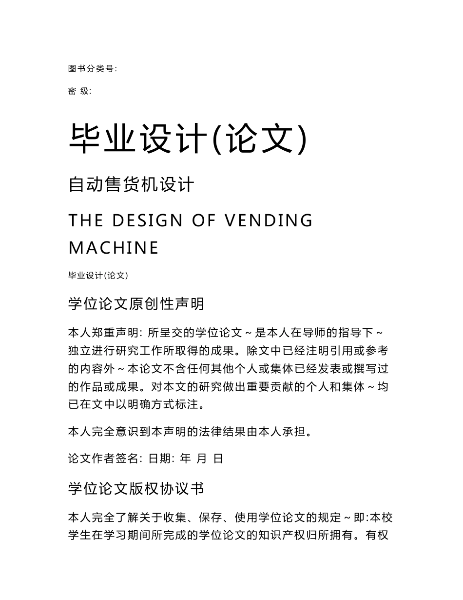图书分类号:密级:毕业设计(论文)自动售货机设计THEDESIGNOFVENDINGMACHINE毕业设计(论文)学位论文原创性声明本人郑重声明:所呈交的学位论文...