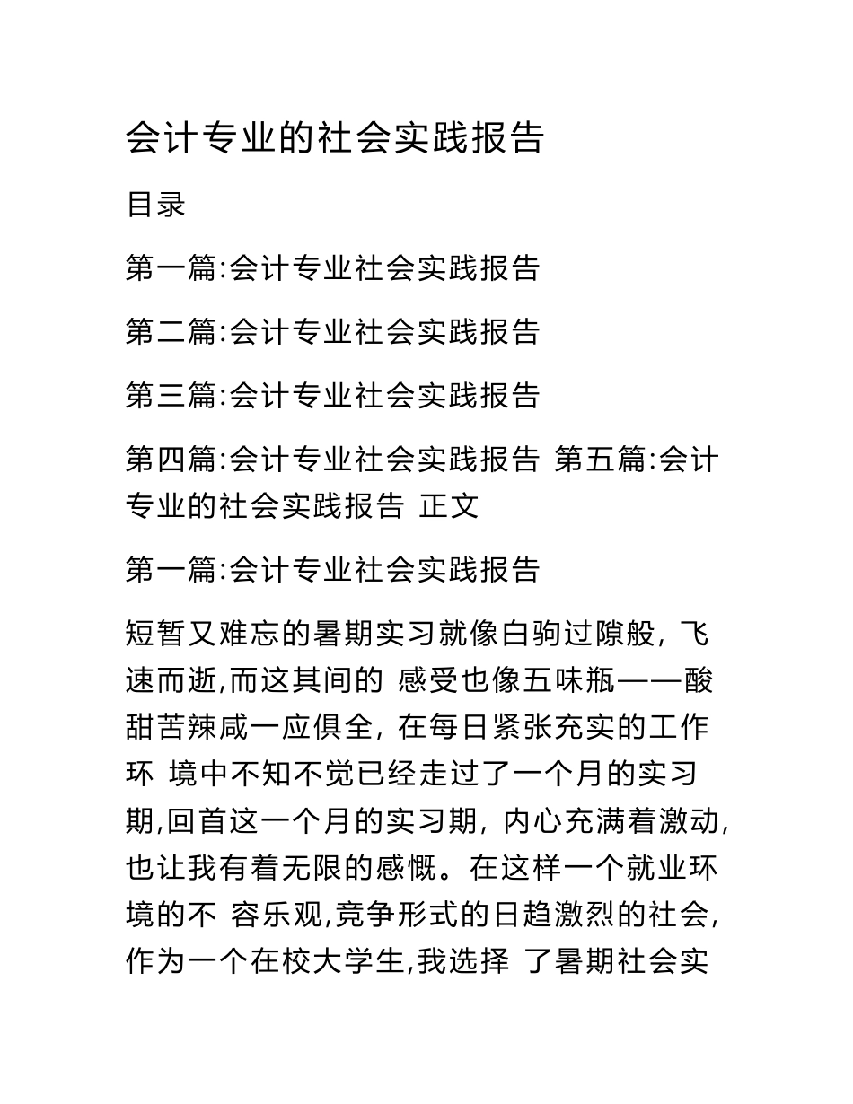 会计专业的社会实践报告与会计专业社会调查报告汇编_第1页
