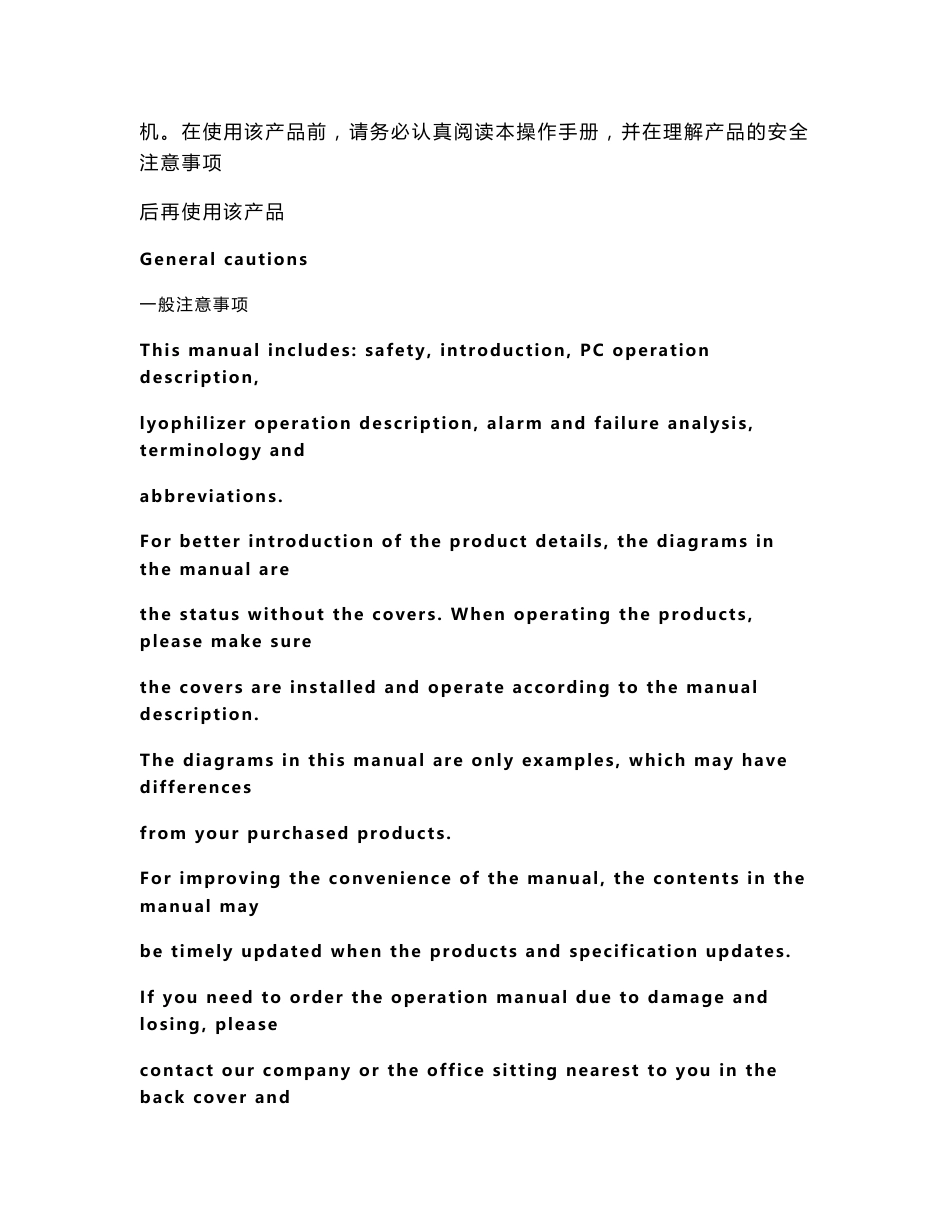 LYOTK15OPERATIONMANUAL操作手册EquipmentName:AutomaticVacuumLyophilizer设备名称:真空冷冻干燥机Equipmentmodel:LYOTK15设备型号:LYOTK1...