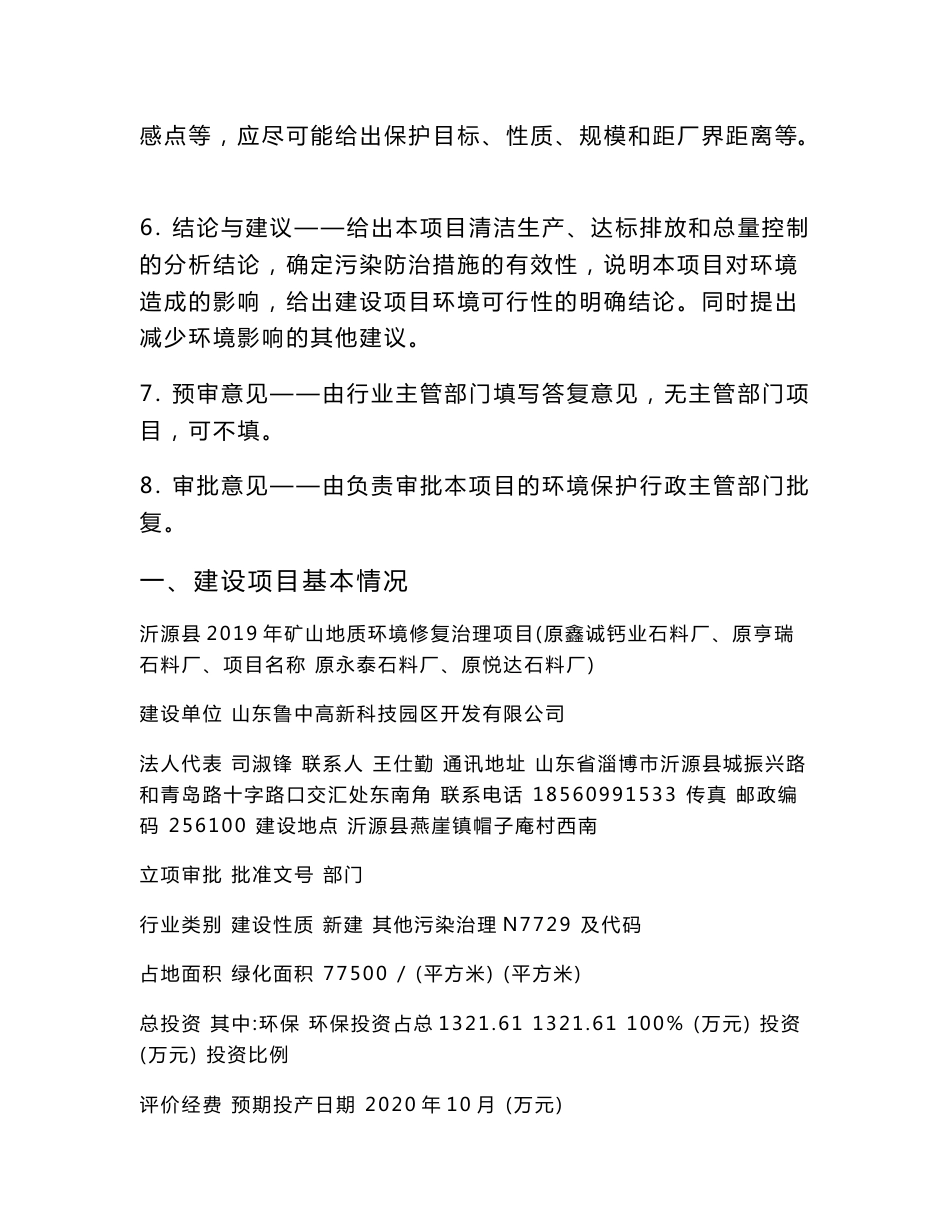 环评报告公示:沂源县2019年矿山地质环境修复治理项目(原鑫诚钙业石料厂、原亨瑞石料厂、原永泰石料厂、原悦达石料厂)_第2页