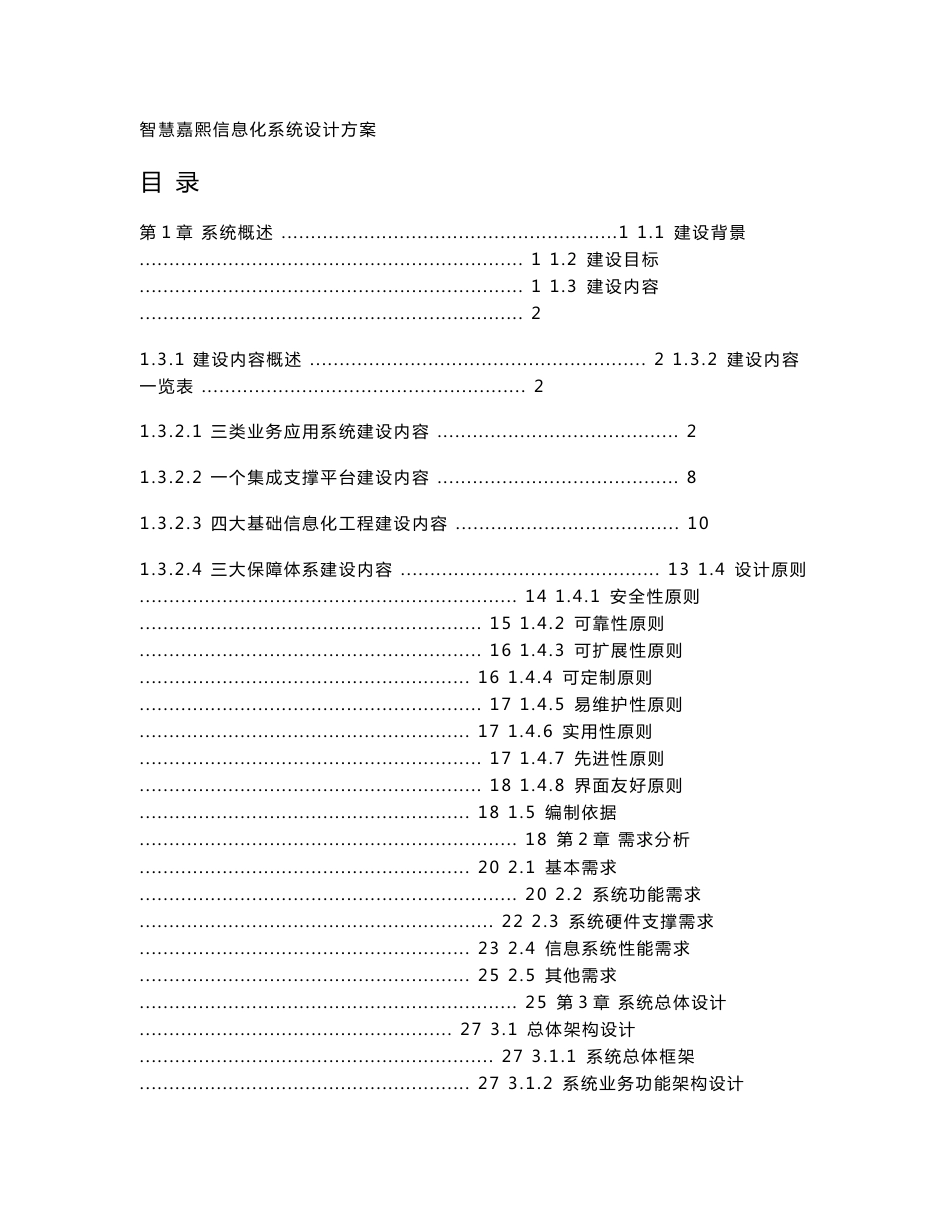 智慧嘉熙信息化系统设计方案目录第1章系统概述.........................................................11.1建设背景.....................