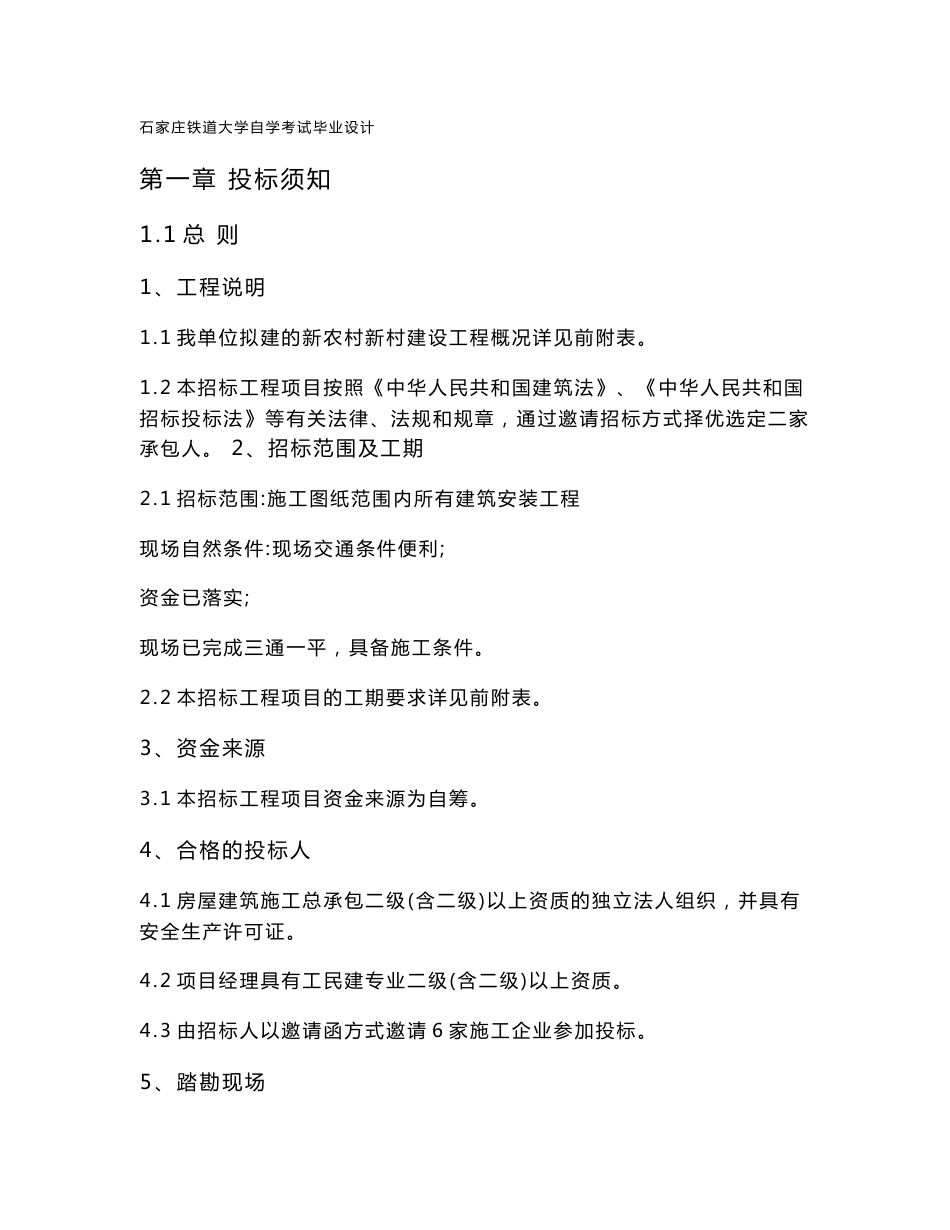 石家庄铁道大学自学考试毕业设计第一章投标须知1.1总则1、工程说明1.1我单位拟建的新农村新村建设工程概况详见前附表。1.2本招标工程项目按...