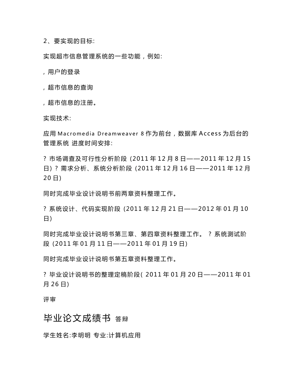 超市信息管理系统的设计与开发DesignandDevelopmentoftheSupermarketInformationManagementSystem(2014届毕业论文)学生姓名:李明明学生班级...